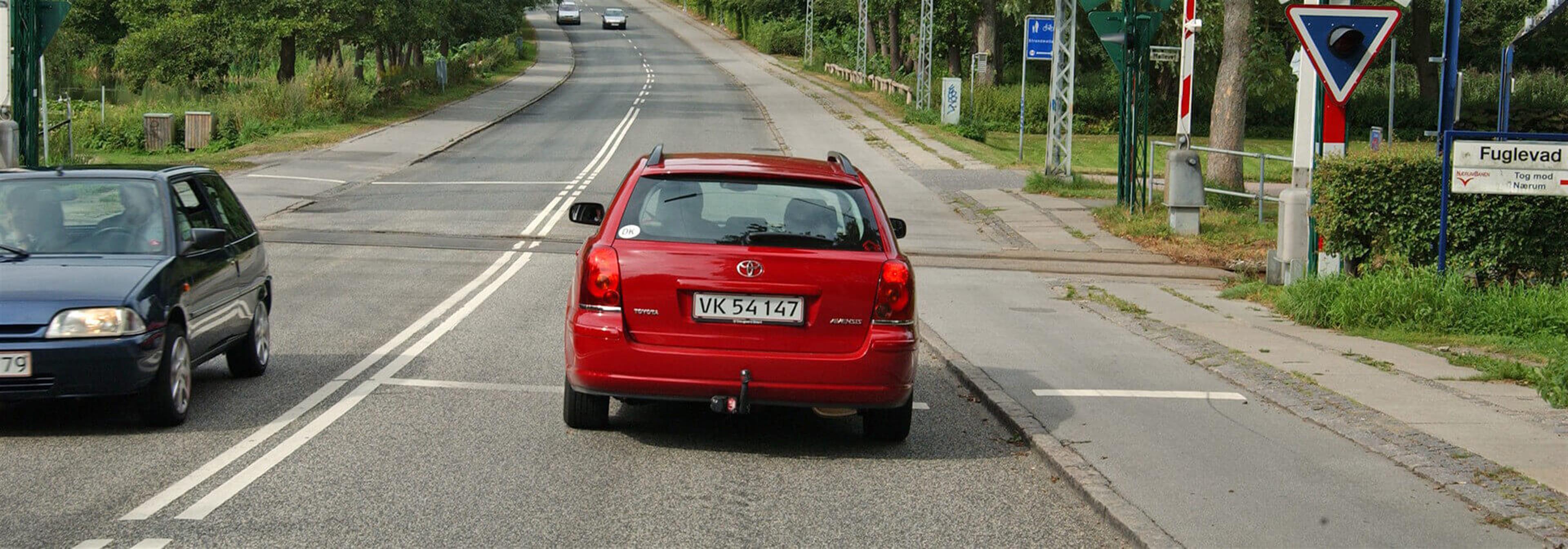 Du kører ca. 40 km/t ligesom bilen foran. Hvordan vil du fortsætte her?